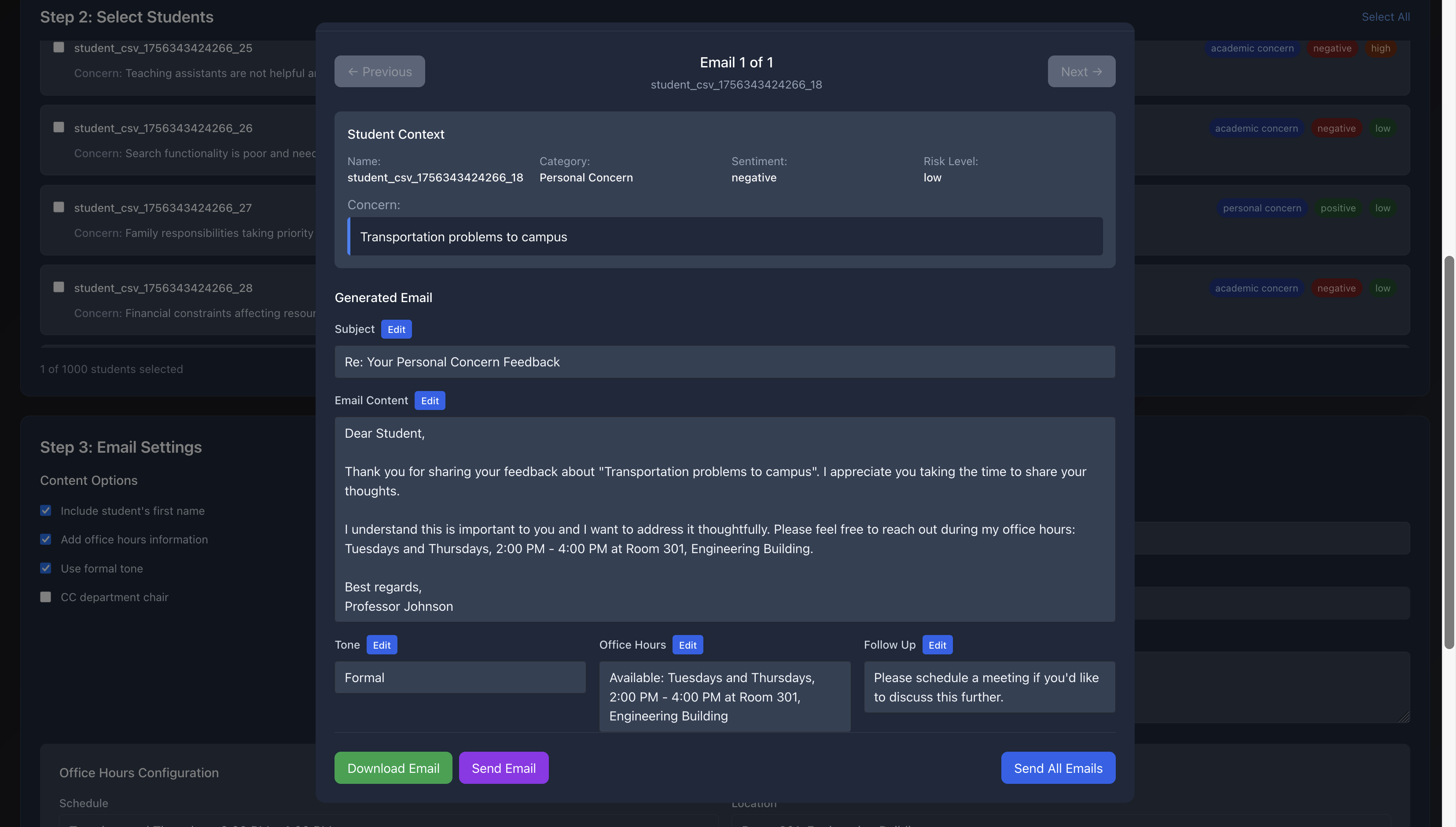 With a class size of over 1,000 students, identifying at-risk individuals early in the semester used to be a daunting task. Feedback Fusion completely changed that. It allowed me to analyze open-ended responses from our start-of-semester survey efficiently, highlighting students who needed support in a way that would have been challenging to do manually. The ability to categorize concerns helped us respond quickly to our students, ensuring that no one slipped through the cracks.